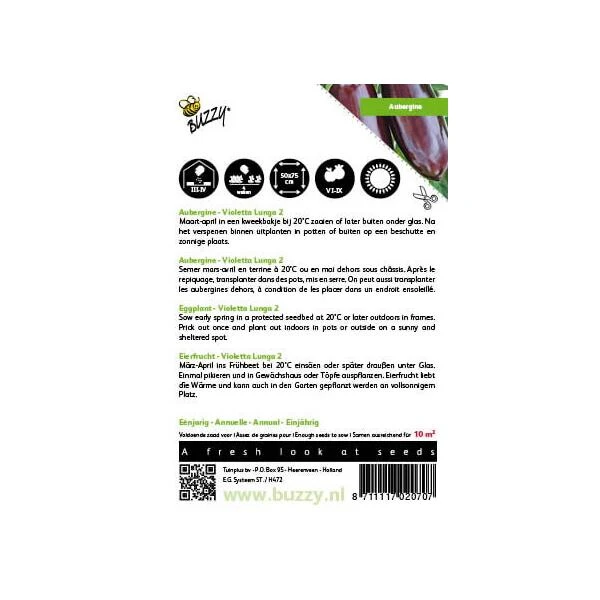 Aubergine lange violette heeft een peervormige, donkerviolette vrucht. Het ‘vlees’ van de vruchten is heerlijk in allerlei gerechten: gestoofd, gekookt of geroerbakt.