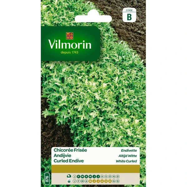 Witte krulandijvie is een fijn ingesneden andijvie met malse, lichtgroene bladeren. Vormt geen eigenlijke krop maar wordt dik gezaaid en afgesneden.