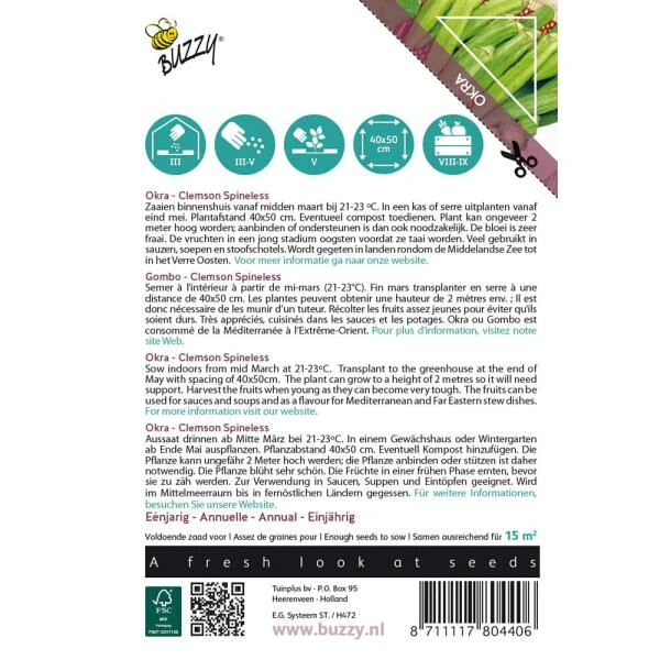 Zaaien binnenshuis vanaf midden maart bij 21 – 23 ºC. In een kas of serre uitplanten vanaf eind mei. Plantafstand 40 x 50 cm. Eventueel compost toedienen. Plant kan ongeveer 2 meter hoog worden; aanbinden of ondersteunen is dan ook noodzakelijk. De bloei is zeer fraai. De vruchten in een jong stadium oogsten voordat ze taai worden.