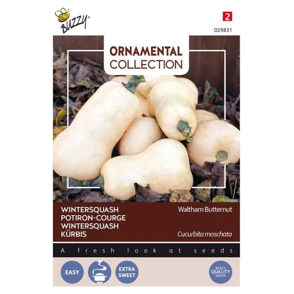 Zaden Pompoen Kalebas ‘Waltham Butternut’ zaaien: vanaf eind april tot half juni in de vollegrond op zaaibed en uitplanten in een vruchtbare grond.