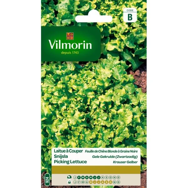 Gele gekrulde snijsla, deze sterke variëteit verdraagt goed hitte en wordt beetje bij beetje geoogst, waarna de planten teruggroeien.