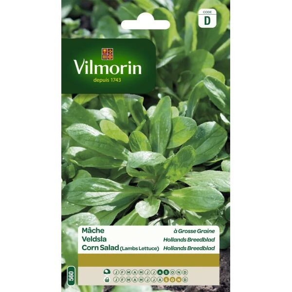 Dit is een vroege en groeikrachtige variëteit Veldsla Hollands breedblad met brede en smakelijke bladeren, zeer geschikt voor oogst tijdens de herfst. Veldsla is zeer rijk aan chlorofyl, vitamines (A, B en C) en mineralen (calcium en kalium).